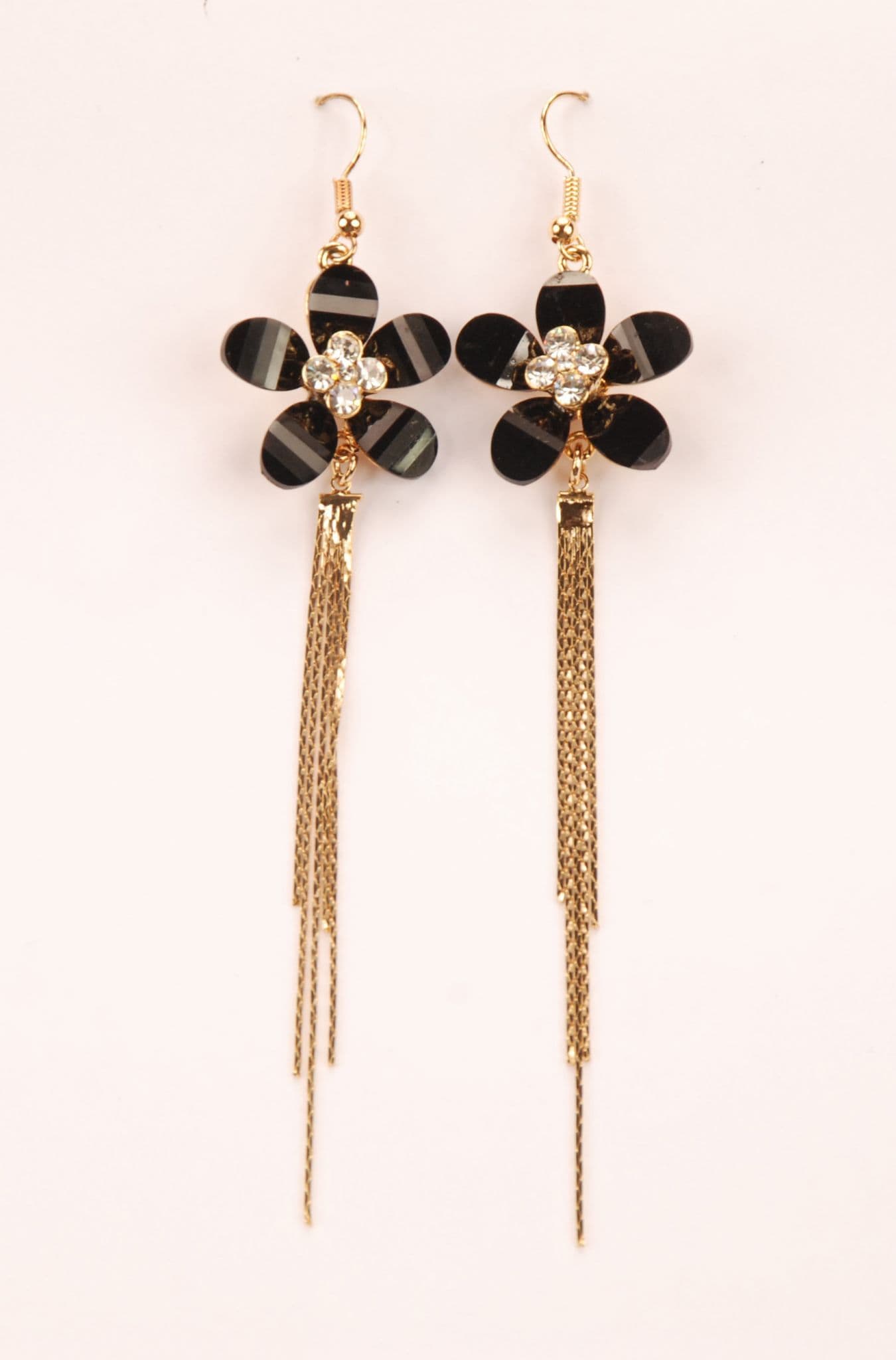 Shaded black petals and sparkling crystal flower drop earrings. Length 10om approx. This exquisite designer jewellery arrives beautifully packaged in a pretty gift box worth more than £3