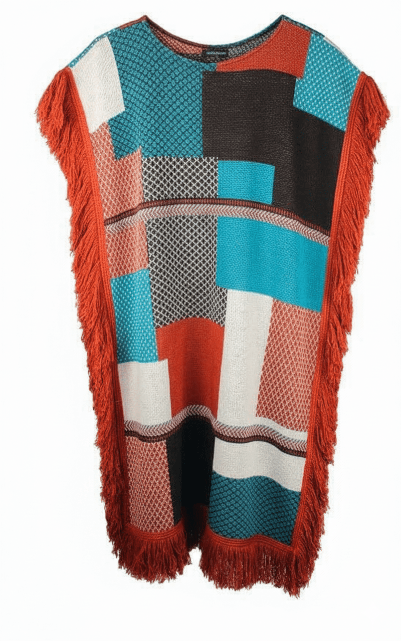 Tantrend Unique Poncho-Dress - Madrid, Spain "Embrace unique style with the Tantrend Multicolour Poncho-Dress, straight from Madrid, Spain! This free-size, sleeveless design offers a vibrant, artistic patchwork of colors in soft acrylic. Perfect for a cozy yet chic look. (Belt not included)"